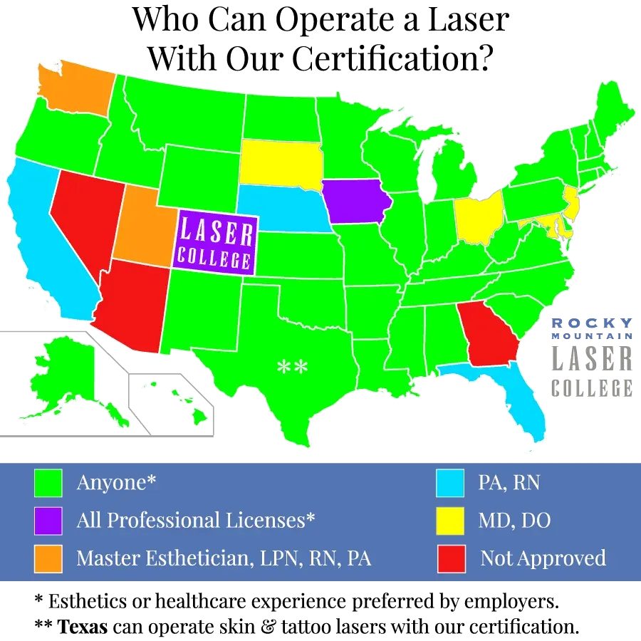 Rocky Mountain Laser College curriculum is approved by the Colorado Department of Higher Education and recognized by 47 states, Canada, and internationally. All hands-on laser training courses occur on-site in Denver, Colorado.